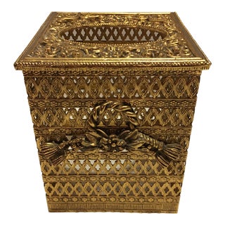 Hollywood Regency Waste Basket Trash Can Gold Filigree Waste