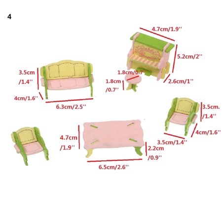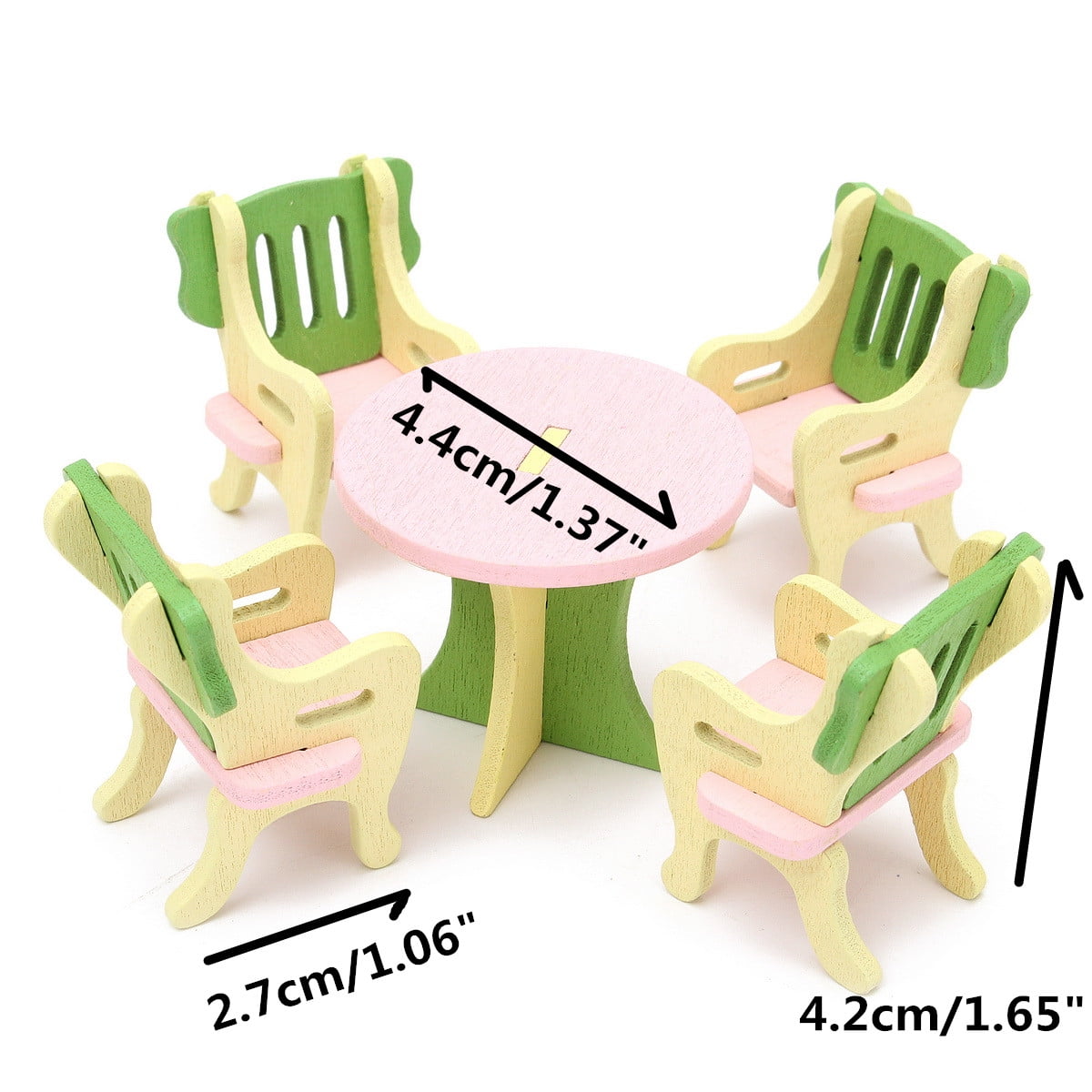 Wood Family Doll Dollhouse Furniture Set Pink Miniature Kitchen